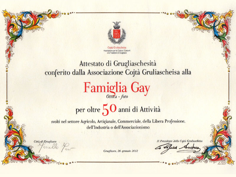 Dal 1962, anno in cui il nonno Aurelio aprì il negozio a Grugliasco, la famiglia Gay mette a disposizione la propria serietà e competenza, acquisita con costanza nel campo dell'ottica.